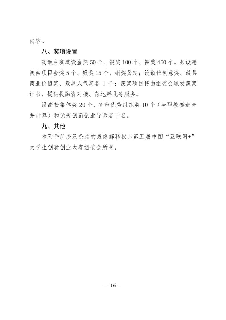 教育部關于舉辦第五屆中國“互聯網+”大學生創新創業大賽的通知(2)