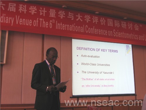 專家發(fā)言(一) 發(fā)言人:Etienne Zé Amvela 教授 主 題:世界一流大學的自動評價和建設——以喀麥隆雅溫得第一大學為例 11月6日上午,喀麥隆雅溫得第一大學的Etienne Zé Amvela教授做了以“世界一流大學的自動評價和建設——以喀麥隆雅溫得第一大學為例 ”為題的報告。