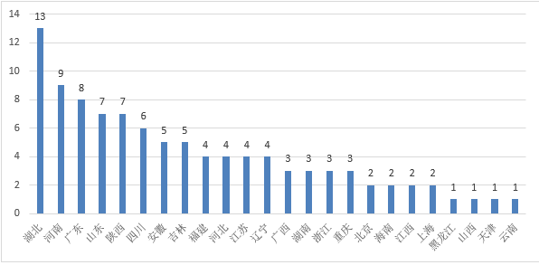 從民辦普通本科院校競爭力排名前100強(qiáng)來看,湖北13所數(shù)量最多,河南有9所高校進(jìn)入100強(qiáng)。