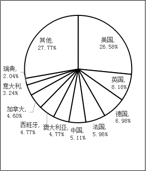 進入ESI環境科學與生態學學科排名的高校共有587所。這些高校分別隸屬于美國、英國、德國、法國、中國、澳大利亞、西班牙、加拿大、意大利、瑞典、日本、巴西、葡萄牙、荷蘭、瑞士、韓國、比利時、南非、希臘、芬蘭、新西蘭、中國香港等91個國家和地區。這些高校的國家或地區分布情況如下圖所示。