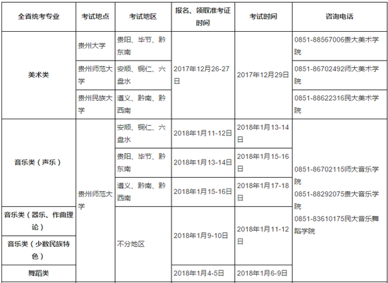 ·貴州2018普高藝術類專業考試招生工作實施辦法