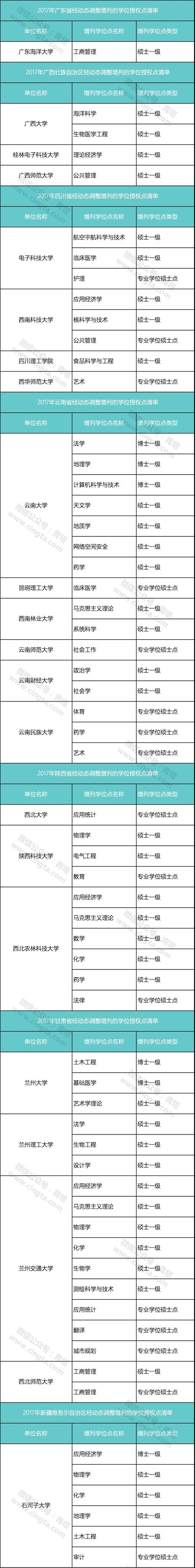 增列學位點較多的高校包括:蘭州交通大學9個、云南大學7個、西北農林科技大學6個、石河子大學6個等。
